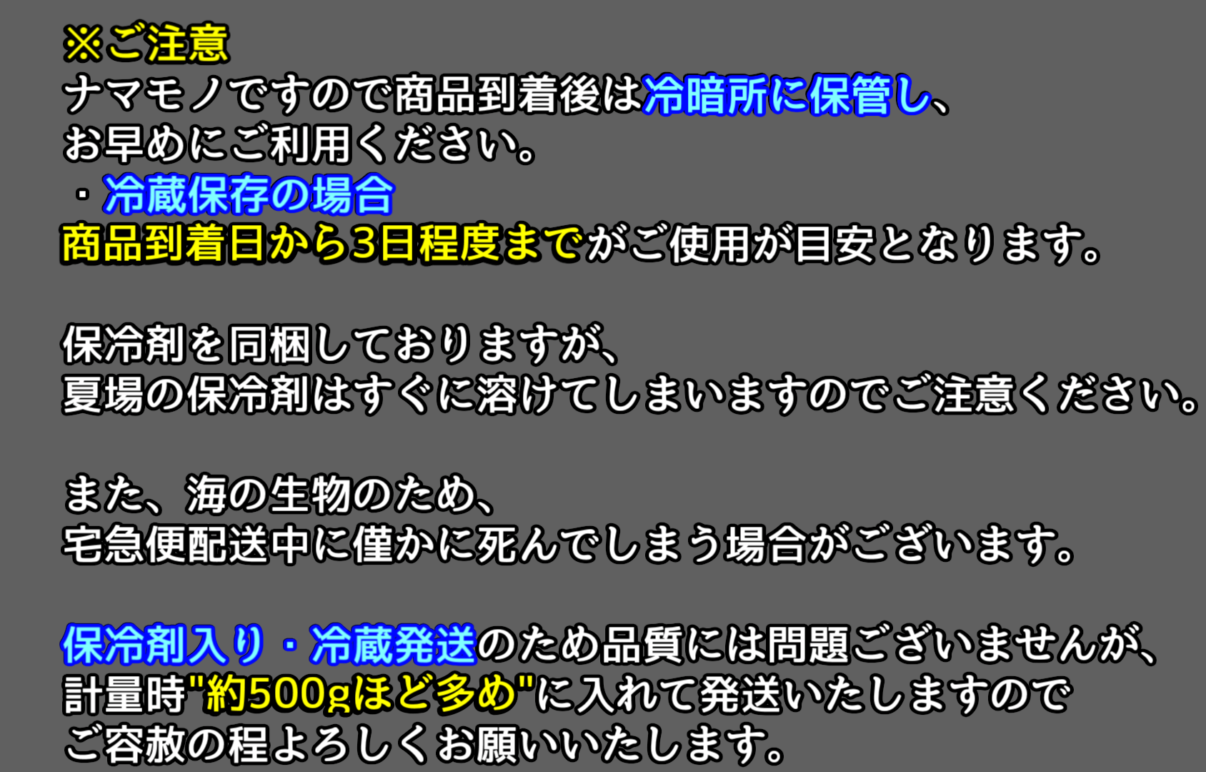 に指定して頂き、冷蔵庫・冷凍庫にて保管して頂くことをオススメいたします。